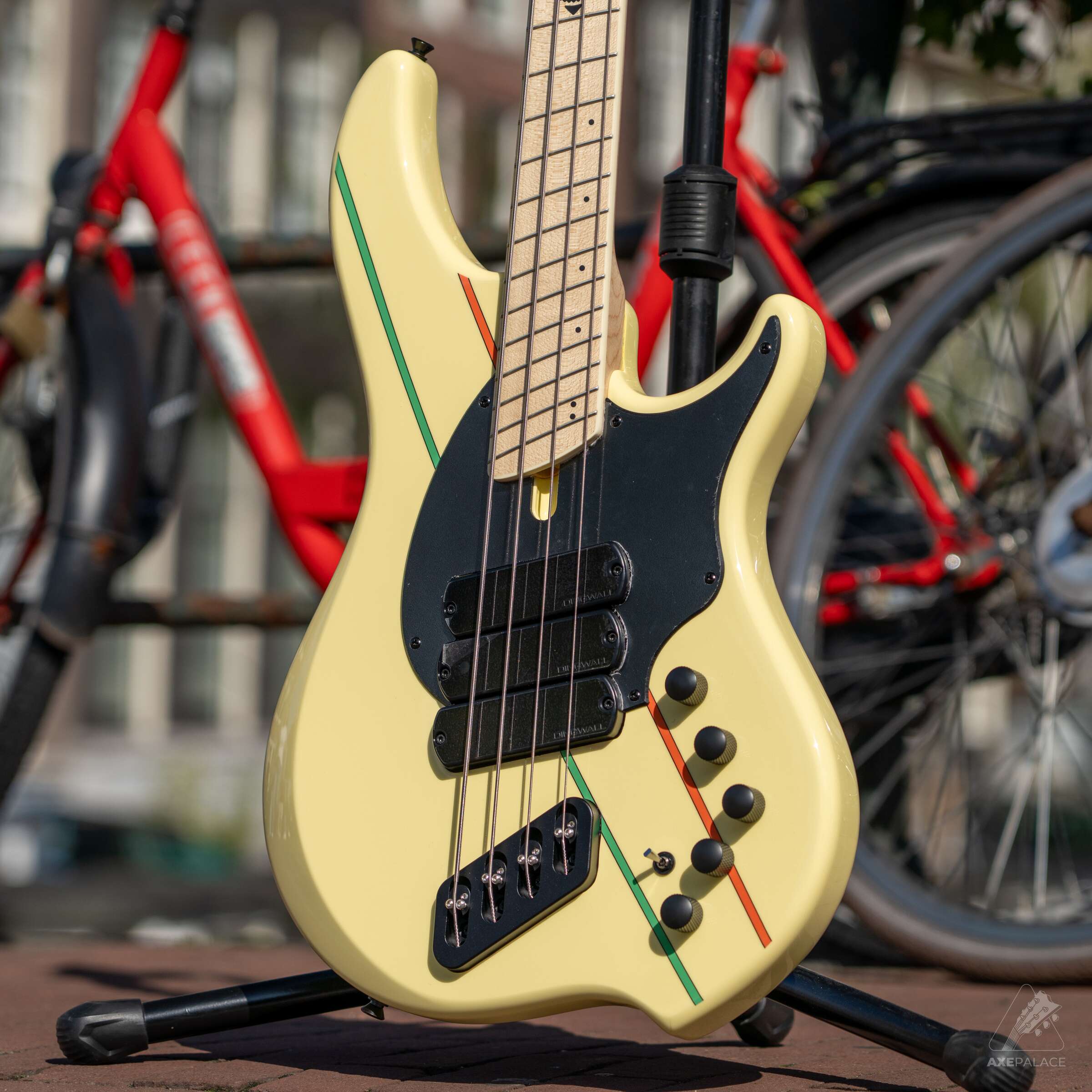 As well as the ‘Rio Eye’ inlaid at the 12th fret, other specs include a lightweight Nyatoh body, a bolt-on Maple neck and a Pau Ferro multi-scale fingerboard. The headstock sports a “Rio-inspired” graphic which complements the body stripes, designed by longtime Duran Duran collaborator, Patty Palazzo. The customary Dingwall fanned-fret system facilitates the most appropriate scale length for each individual string. It’s a concept that’s applied across the entire Dingwall range.