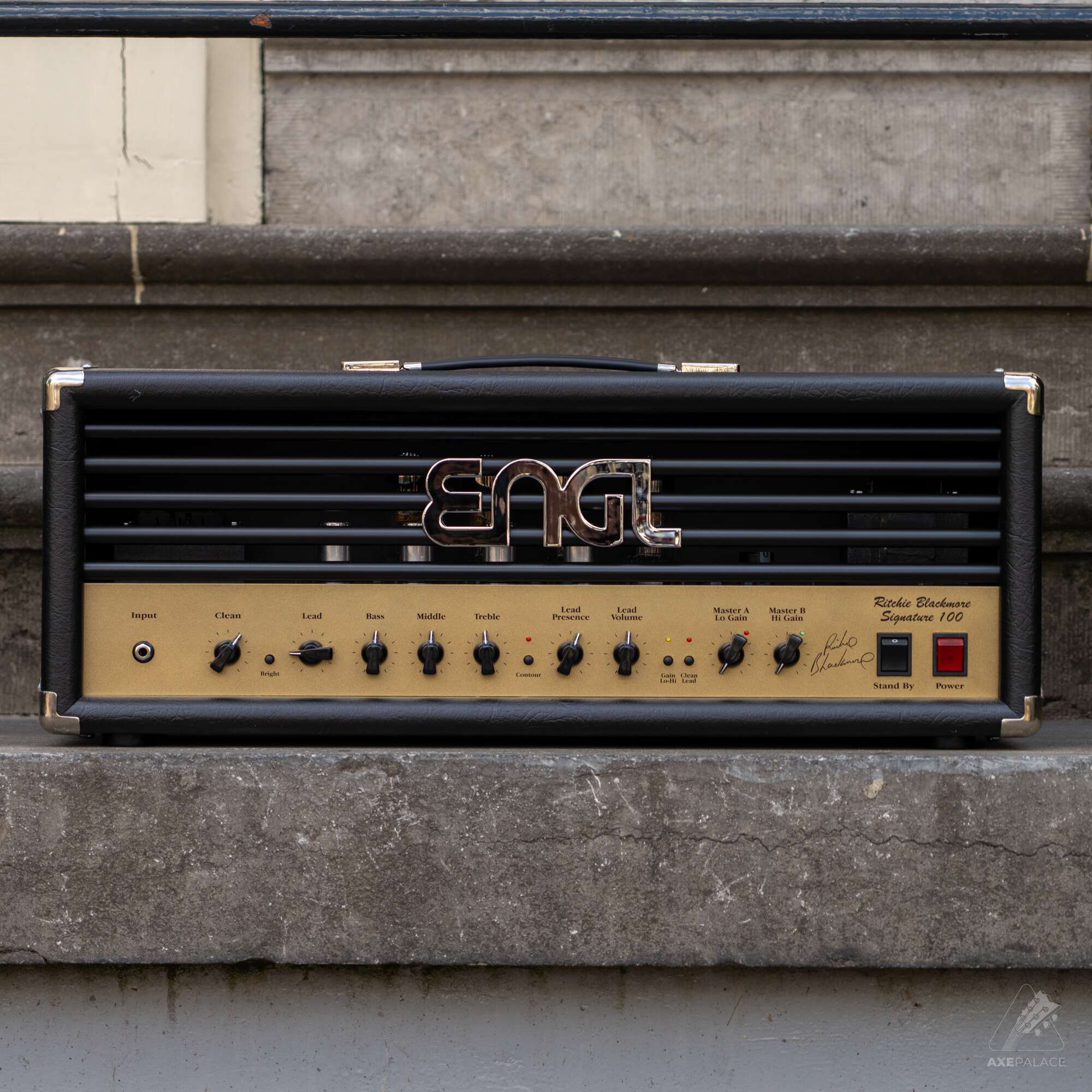 The ENGL Ritchie Blackmore v2 is a superb all-tube head featuring the sound made famous by guitar legend Ritchie Blackmore. Based on the successful ‘Savage’ technology, this ENGL head delivers great fine tuned sounds from clean, to crunch, to high gain lead. You can vary the amount of crunch for the 2 channels Clean and Lead via the Gain Lo/Hi switch. More special features include 2 master volume controls, the contour button, integrated Noise Gate, and a custom Z9 footswitch port for the connection of a compact pedal-board that enables the direct access to all important switching functions.
